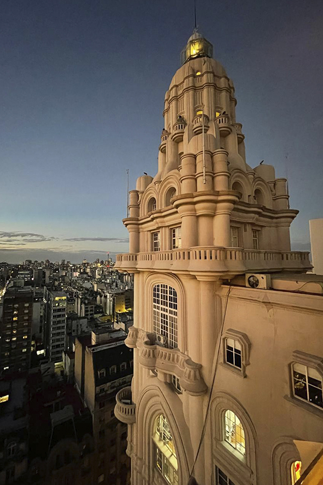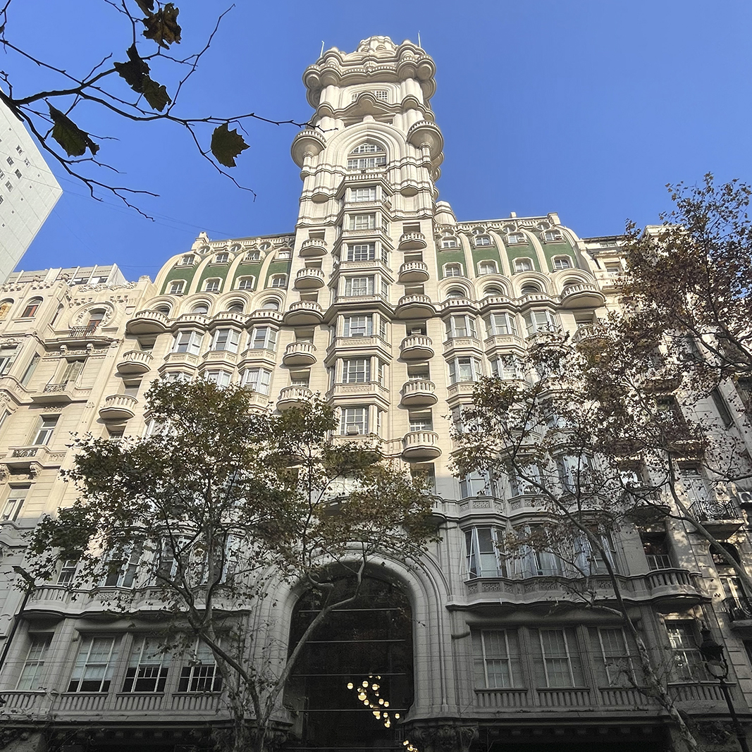 Ispirato alla Divina Commedia l'edificio è composto da tre parti principali: Inferno, rappresentato dai piani che Iniziano nel seminterrato fino al 4° piano con molteplici allegorie e ornamenti, Purgatorio e infine il Paradiso rappresentato dal faro che svetta sulla cima per creare un ponte di luce sul Río de la Plata.